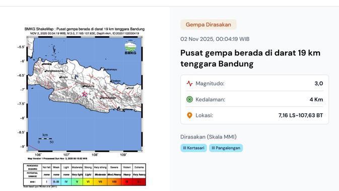 Gempa Hari Ini Minggu 2 November 2025: Empat Kali Guncangan di Indonesia